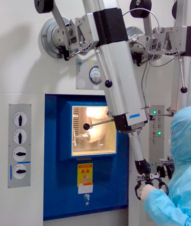 - Al ser productos radioactivos , este proceso se realiza a través de un sistema de Telemanipuladores que permite una operación segura y eficiente tanto para el producto como al operador.